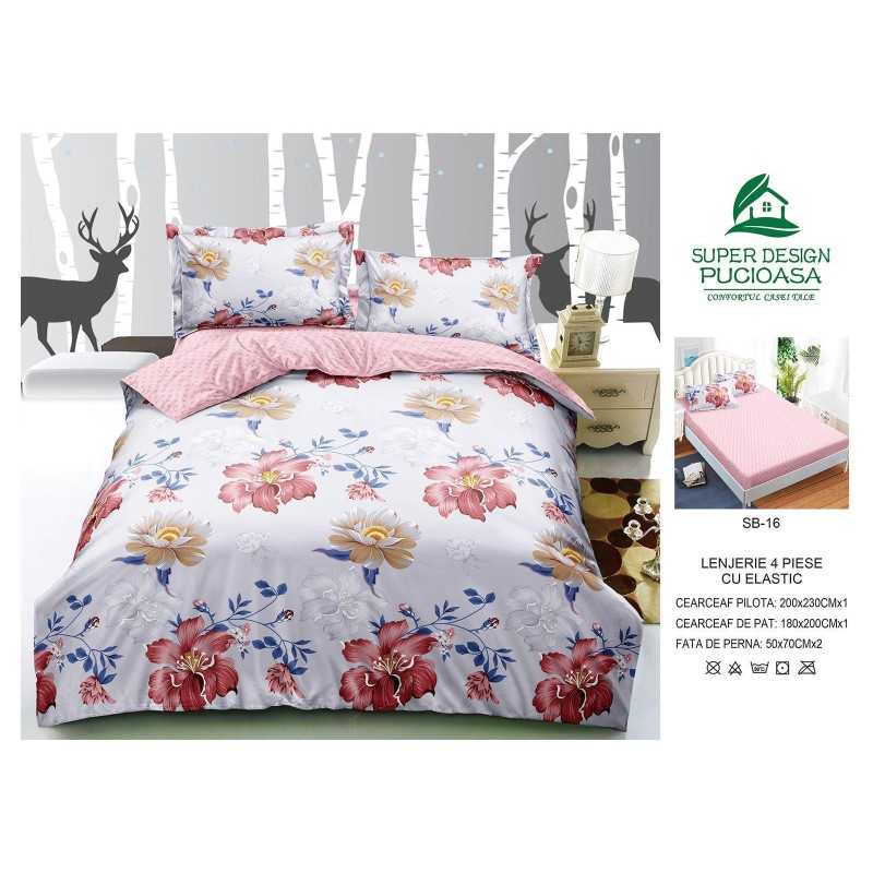 Lenjerie de pat bumbac finet cu elastic – 4 piese | 12947-V