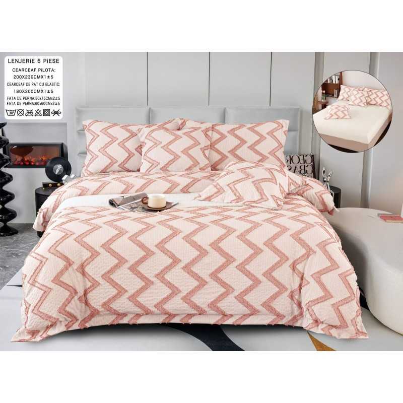 Lenjerie de pat bumbac fin grofat cu elastic - Premium – 6 piese | 13072-P
