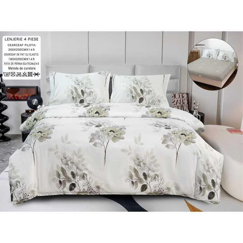 Lenjerie de pat bumbac satinat cu elastic – 4 piese | 14483-P