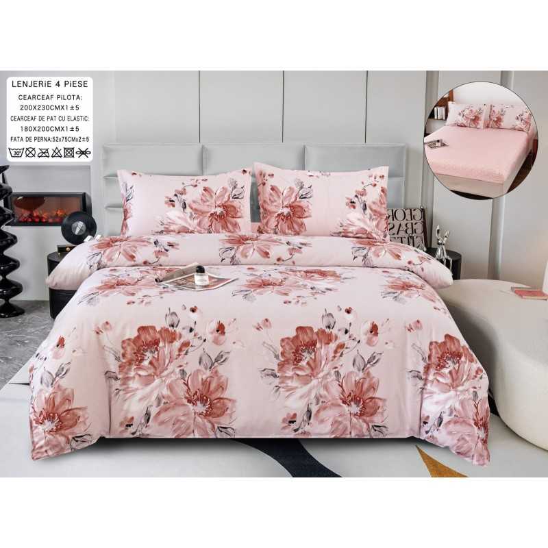 Lenjerie de pat bumbac satinat cu elastic – 4 piese | 14493-P