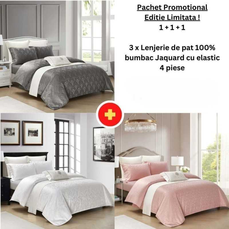 Pachet Promo 1+1+1 - Lenjerie de pat 100% bumbac Jaquard cu elastic | 15036