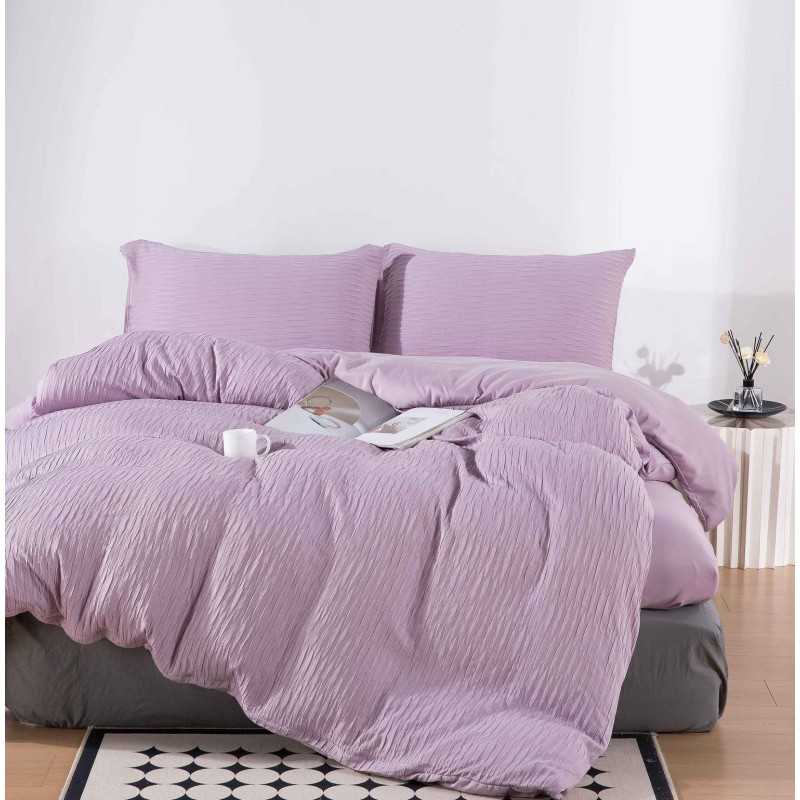 Lenjerie de pat 100% bumbac creponat - cu elastic - 4 piese | 15476-PR