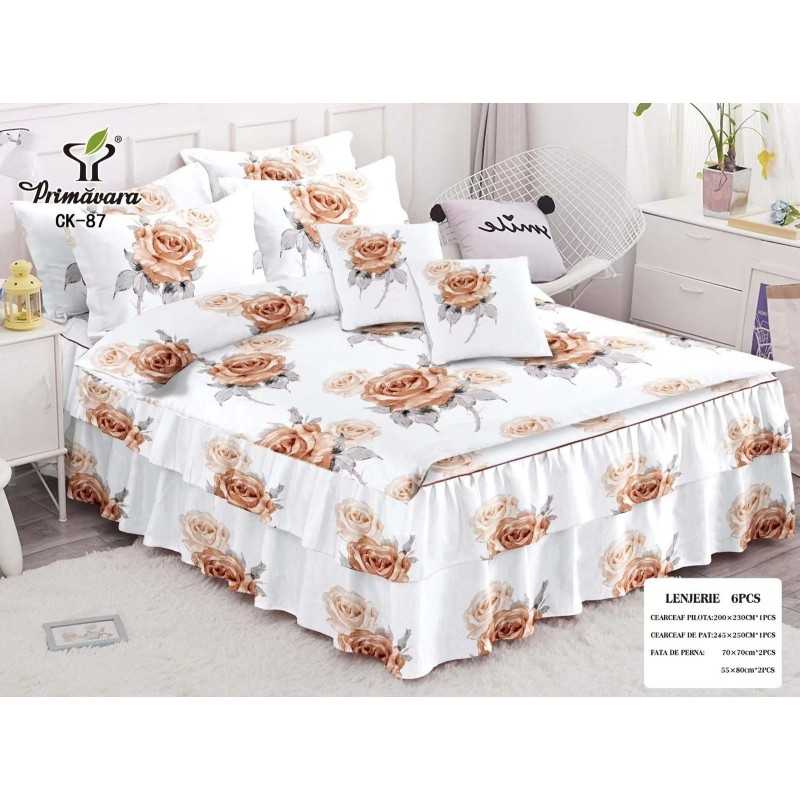 Lenjerie de pat bumbac finet cu 2 volanase – 6 piese | 15680-PR