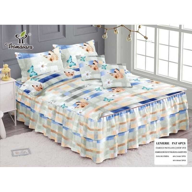Lenjerie de pat bumbac finet cu 2 volanase – 6 piese | 15691-PR