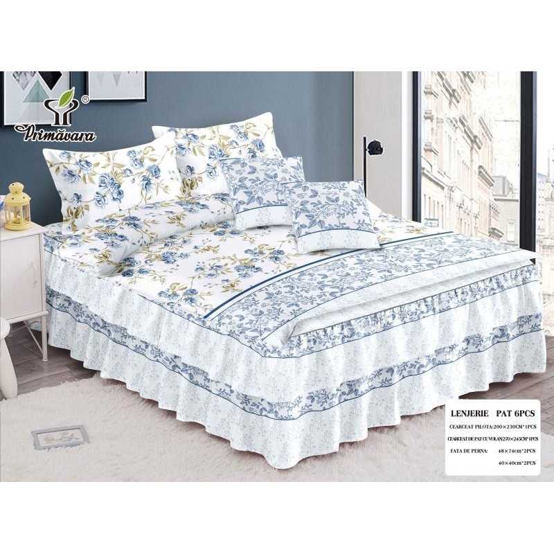 Lenjerie de pat bumbac finet cu 2 volanase – 6 piese | 15694-PR