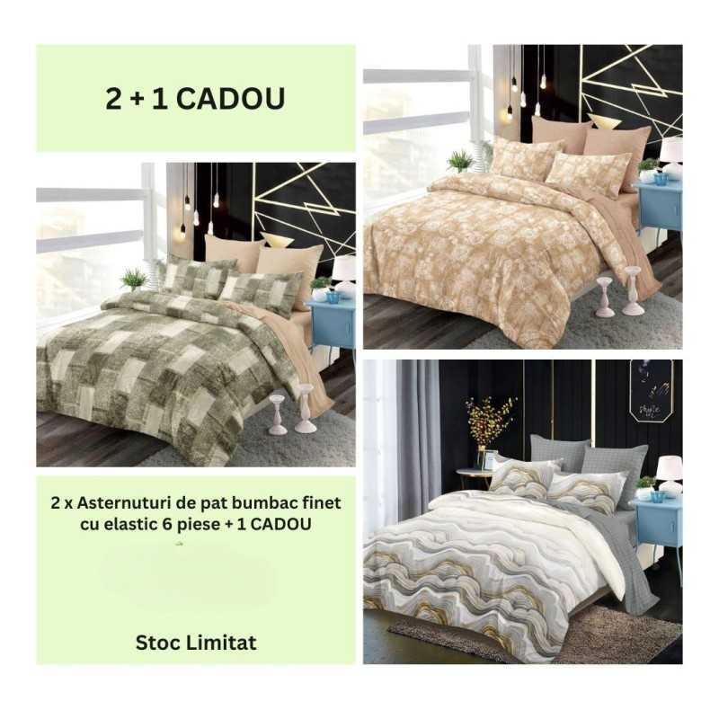 Descriere :2 + 1 CADOU x Lenjerie de pat bumbac finet cu elastic - 6 piese  Dimensiuni :
