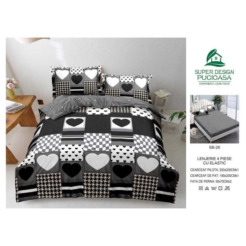 Lenjerie de pat bumbac finet – 4 piese cu elastic | 16899-V